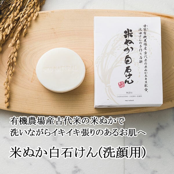 【米ぬか白石けん】(洗顔用)有機栽培オーガニック『古代米』米ぬかエキスで ハリある若々しい肌に